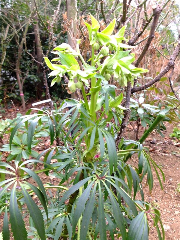 花びらは、外花被の長いもの3枚と、その中に3枚の短い内花被の六弁花で、内花被に緑色の模様が出る。♡マークばかりと思っていたら、人面模様などもあるらしい。これからよく観察してみよう。