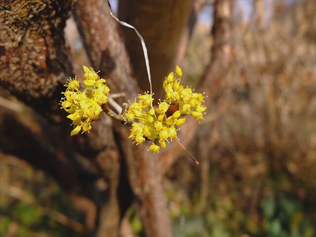 ここに3人の小母様がいて、ひとりが「これはミツマタ。コウゾ・ミツマタって、あのミツマタよ」「ふうん」と他のふたり。私は内心、(違います。山茱萸です。ミツマタの花と見た目も大きさもまったく違います)と言いたかったけれど、自信たっぷりに説明している小母様のプライドを傷つけるとまずいかもしれないと思ったし、あとのふたりも、この花を次に見て、これはミツマタだと記憶しているとは思えず、ま、いいかと。