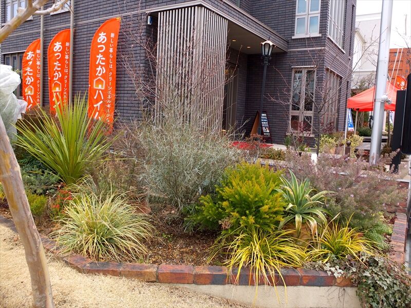 6枚目、ガーデンの外は住宅展示場。緑の植物だけでも何種類か植え込まれていると綺麗。