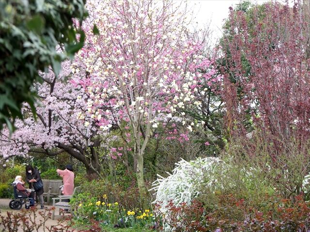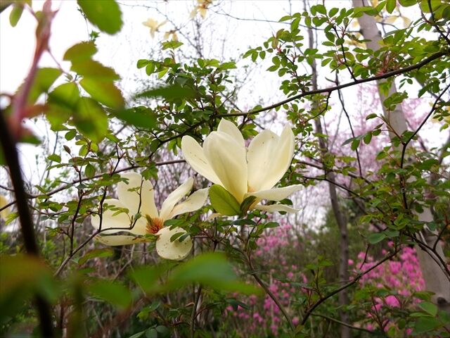 鬱金は昨日載せたようにギリギリで間に合い、須磨浦普賢象もこんなに咲き始めていた。まだつぼみがたくさんあったけれど、すぐに満開だろう。