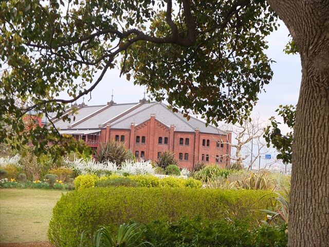 1枚目、ナビオス横浜をくぐって、歩いて来た赤煉瓦館を振り返ったところ。