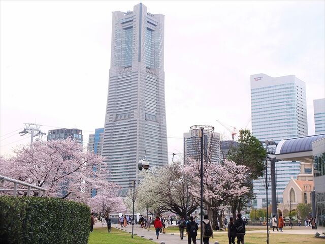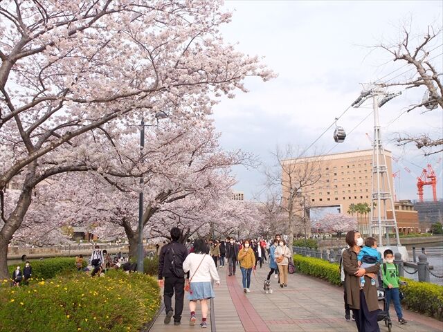汽車道を通ってランドマークタワーの方へ。桜を満喫できた遊歩道だった。