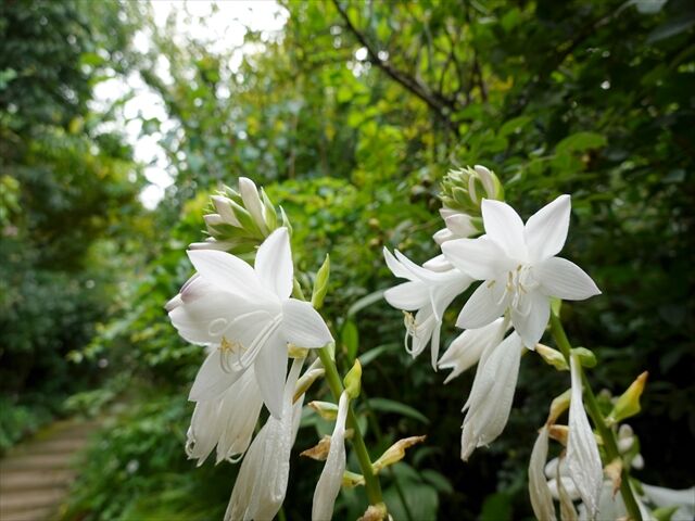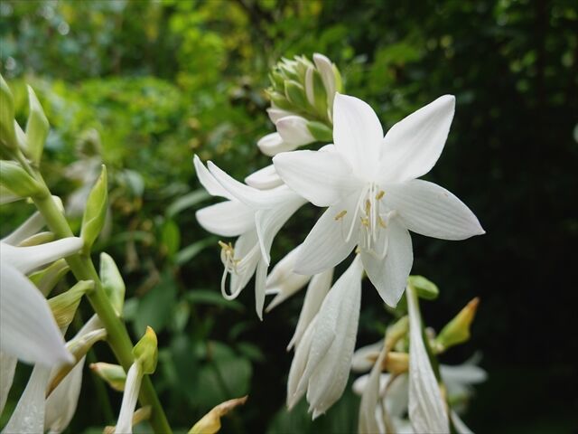 5〜6枚目、純白の擬宝珠(ギボウシ)。とうに終わっているものも多い中、先週も咲いていた。終わりに近づいている。