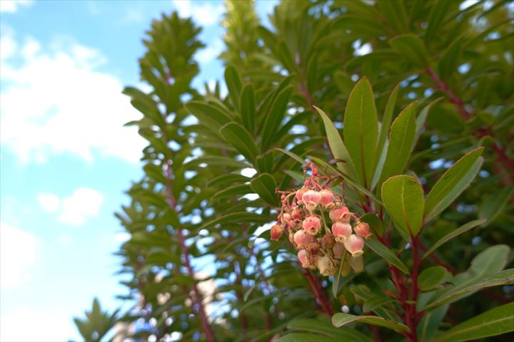 5枚目、ガーデンを出て、住宅展示場内でイチゴノキの花。長く咲いている。