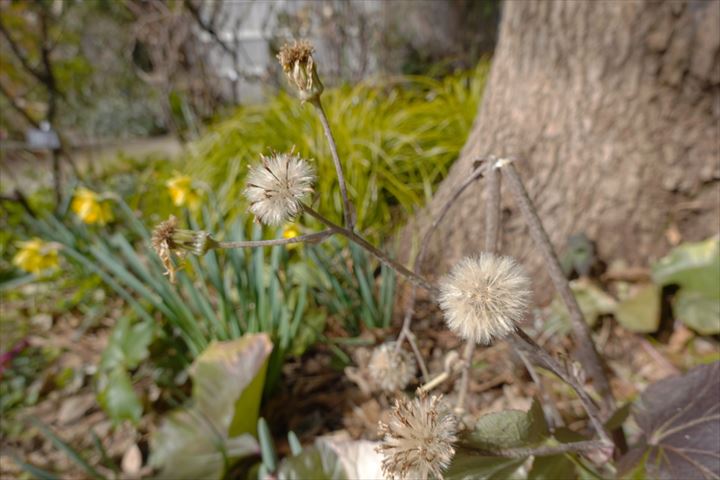 その向こうに、2枚目、蒲公英(タンボボ)の綿毛のような、石蕗(ツワブキ)の種子。