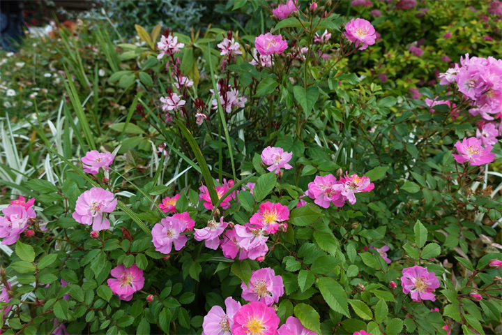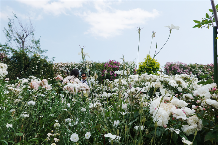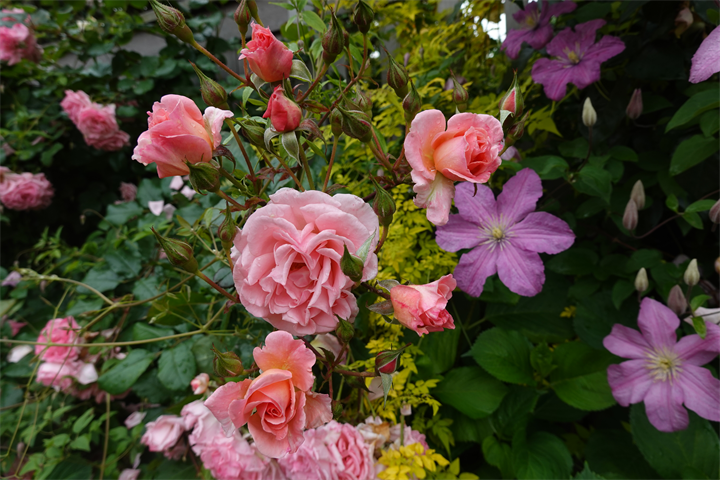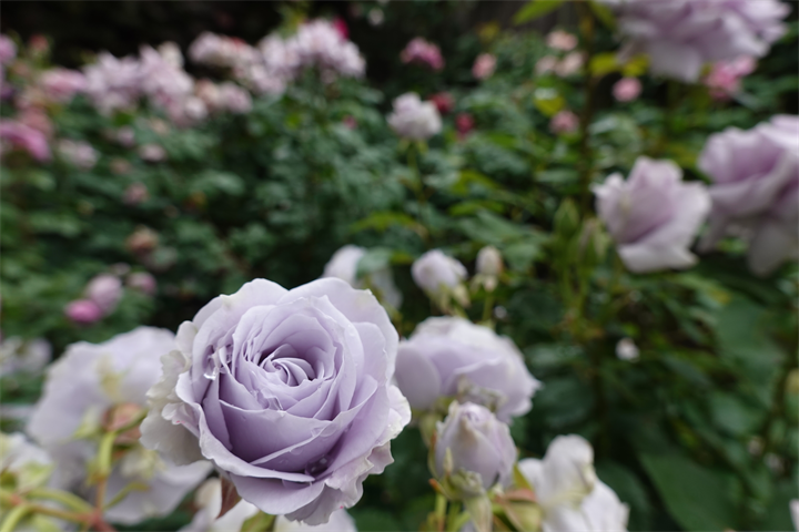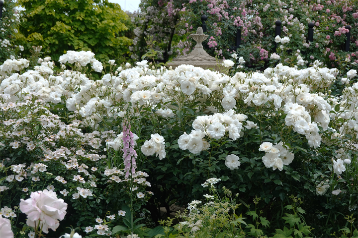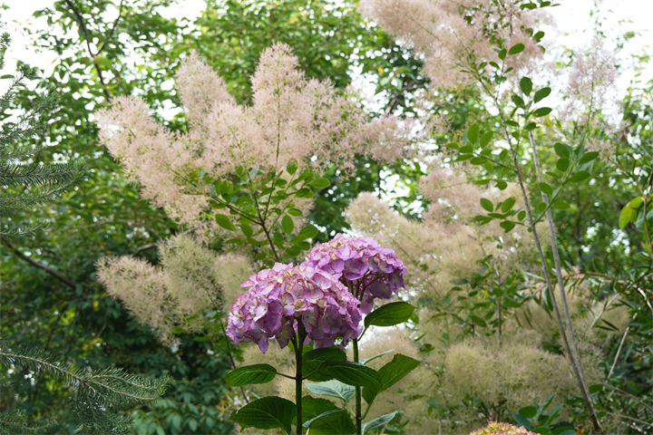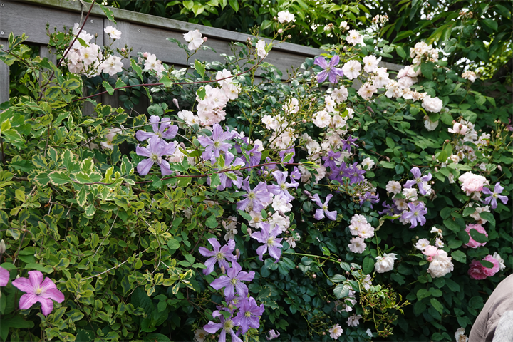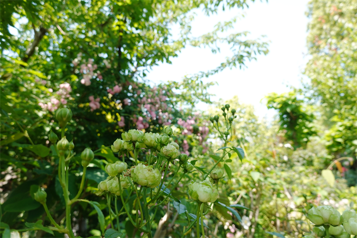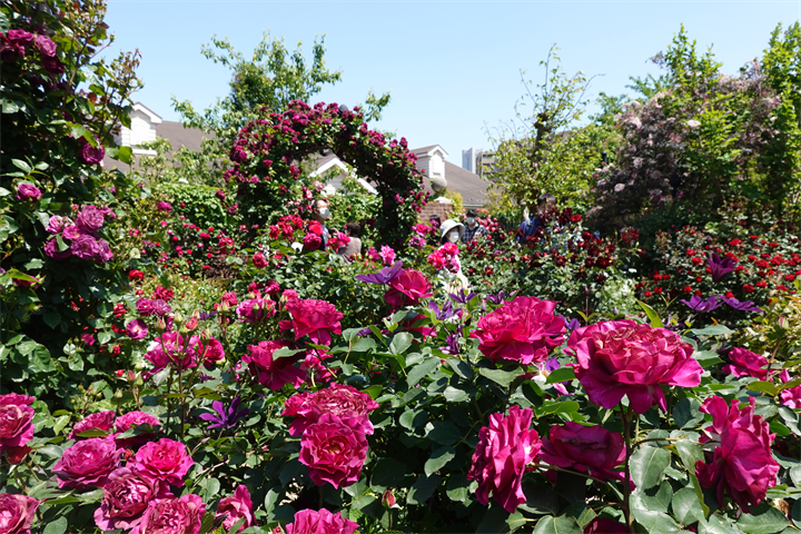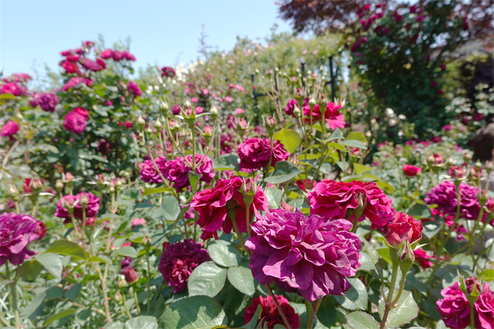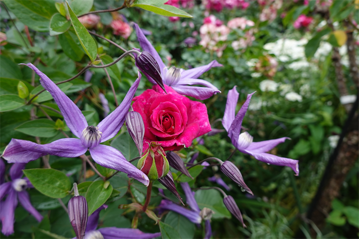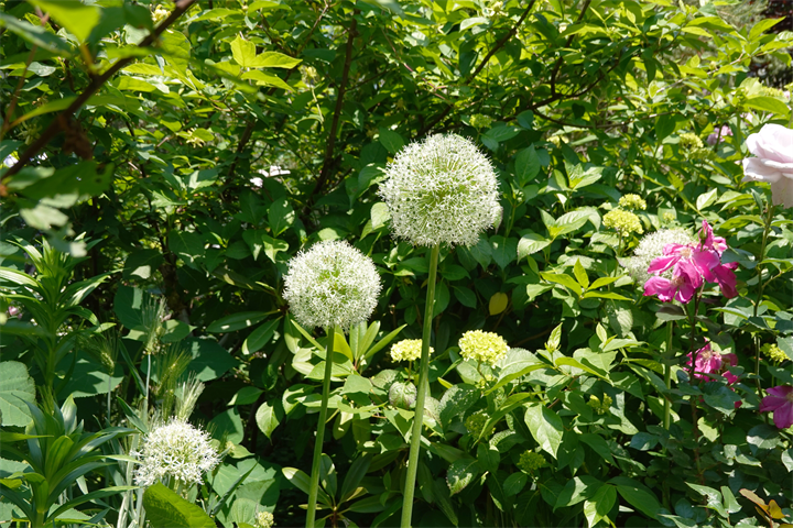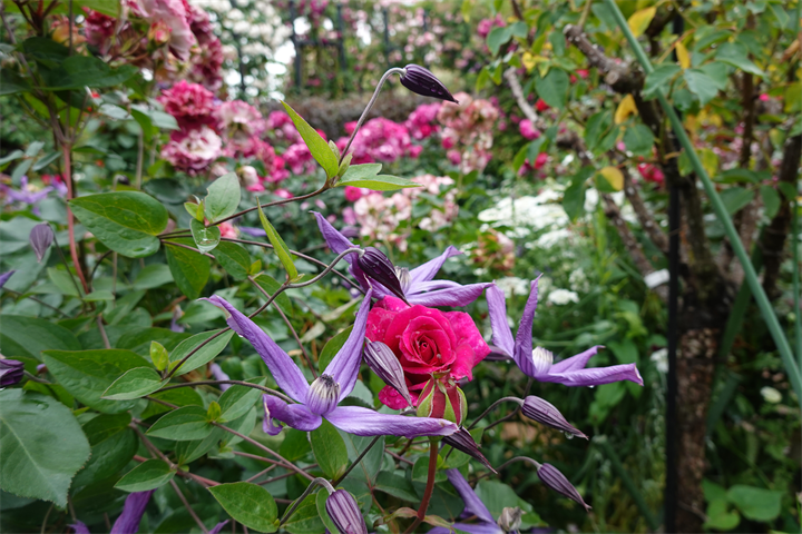 その近くで盛りの薔薇や、色づき始めている紫陽花。これから薔薇と交代していくガーデンの紫陽花も数が多くて素晴らしい。