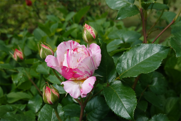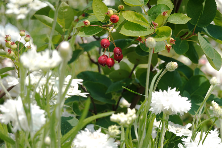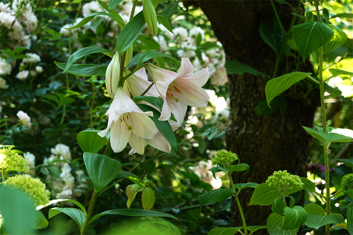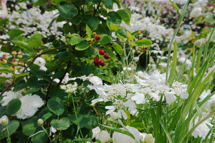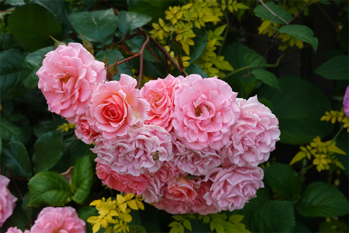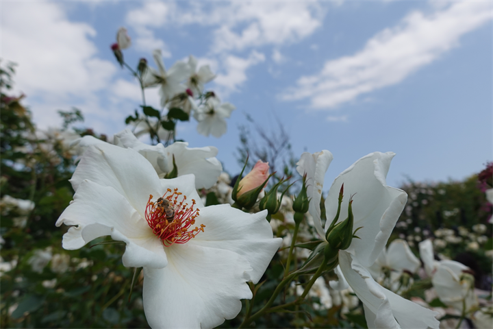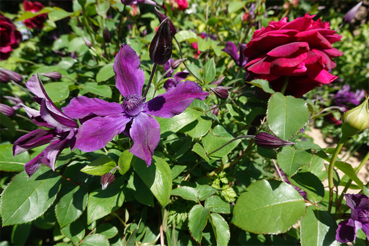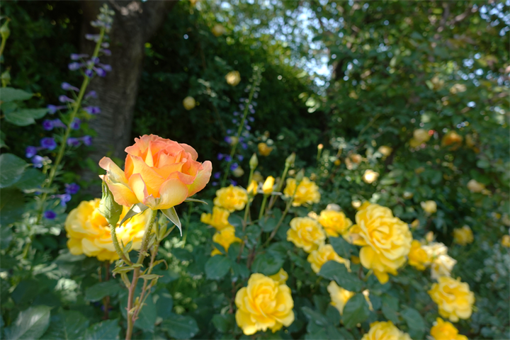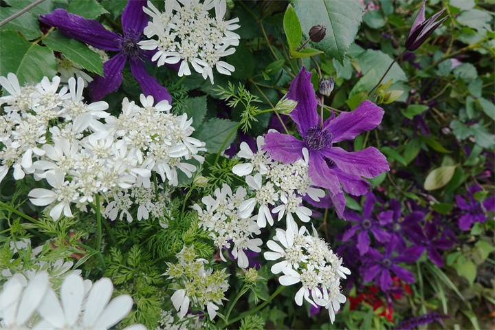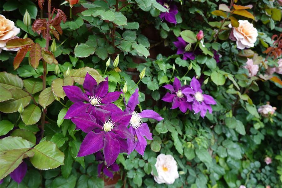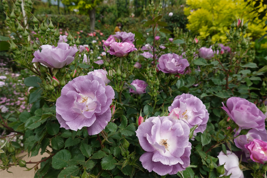 その近くで盛りの薔薇や、色づき始めている紫陽花。これから薔薇と交代していくガーデンの紫陽花も数が多くて素晴らしい。