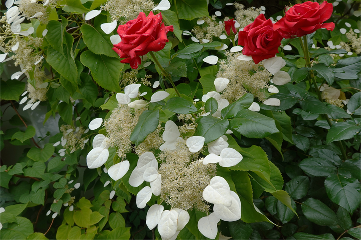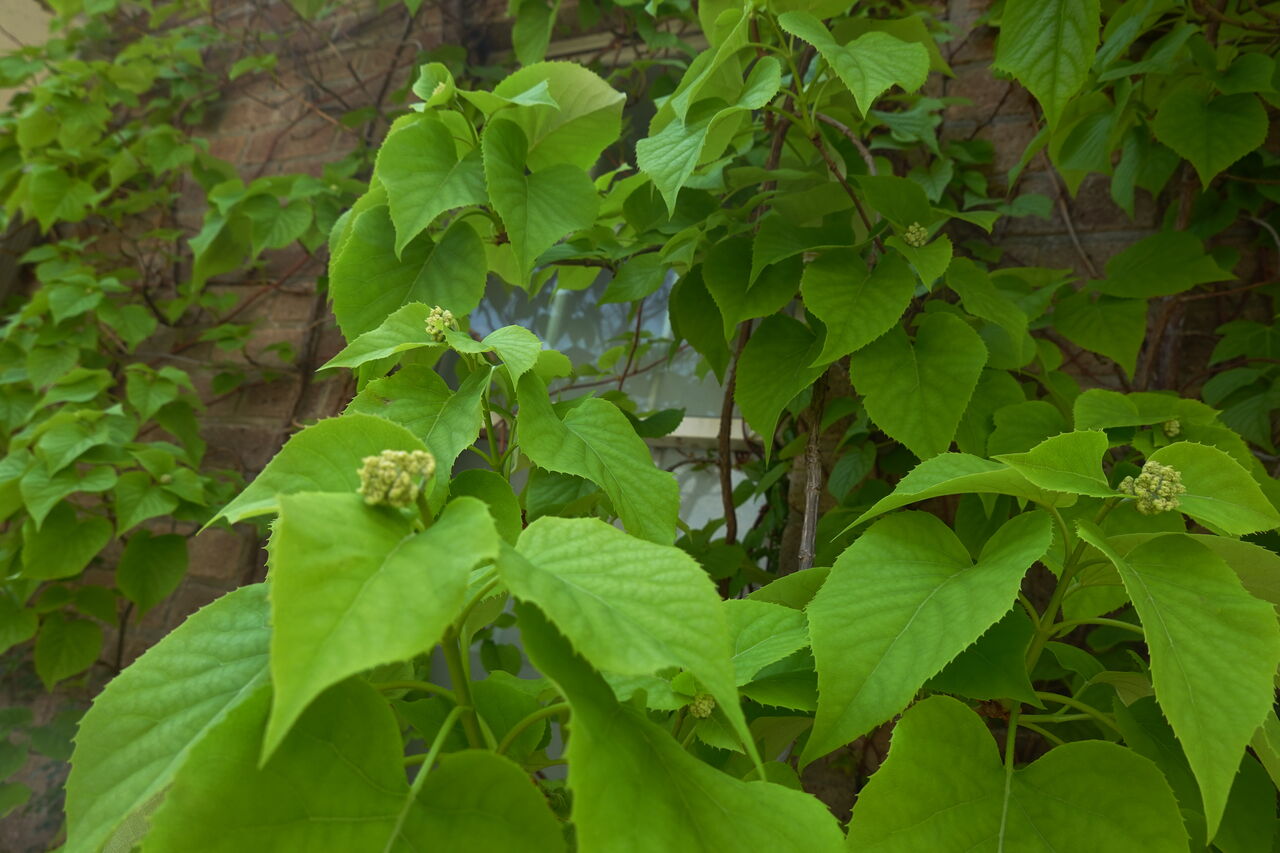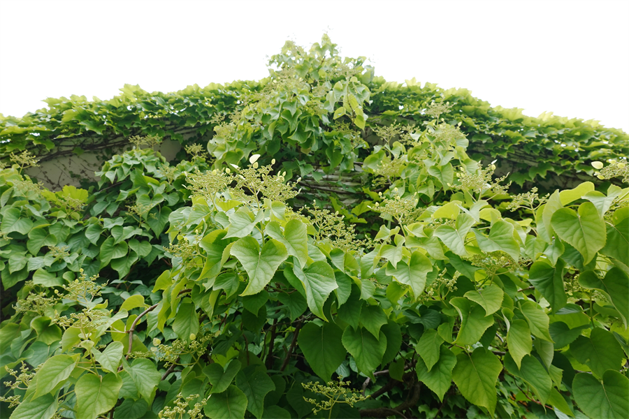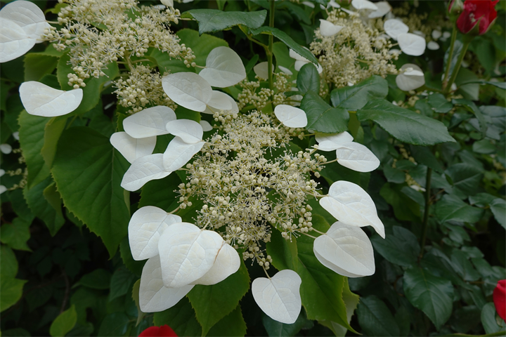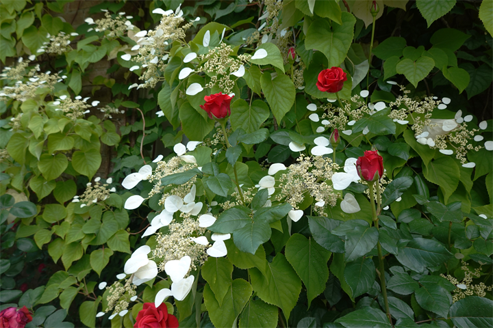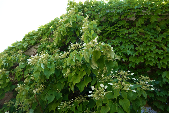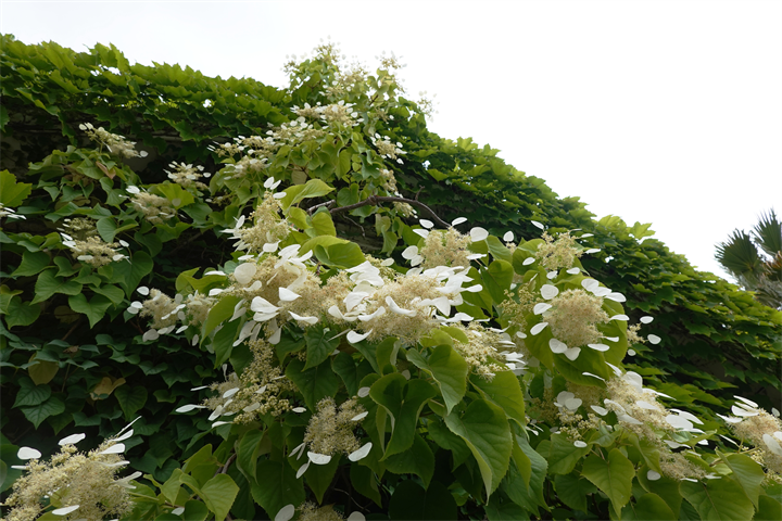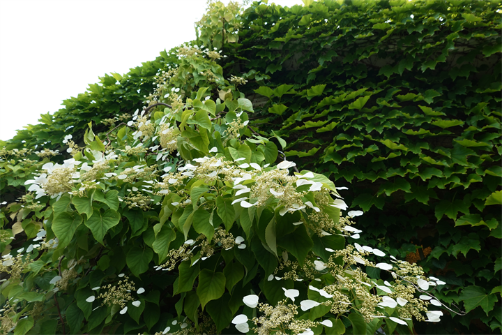 ガーデン入口の建物に岩絡み(イワガラミ)があるのを知ったのは何年前だろう。アジサイ科アジサイ属の蔓性の木。山地の木にもよく絡みついている。