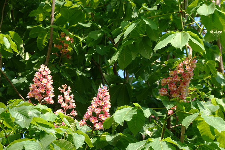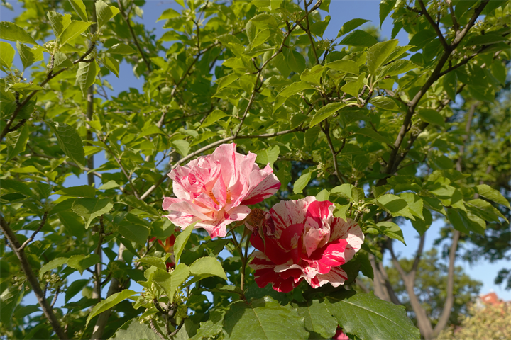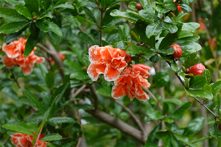 1〜2枚目は石榴(ザクロ)の花だけれど、数人の小母様集団のひとりが「ツツジ」と言っていたので、それはちょっとなあ……と気になって「ザクロですよ」と口出ししたら、他の人達が、「ああ、ザクロね。実のようなのものも生ってる」と。その「実のようなもの」はつぼみだけれど、それは黙っていた。