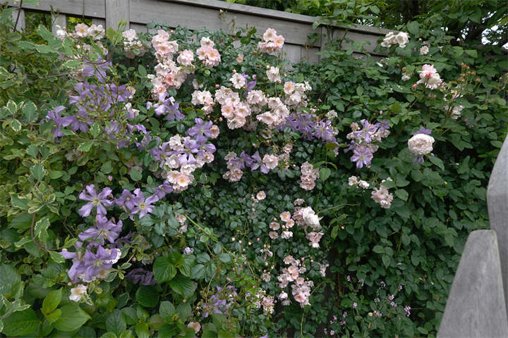 最後の2枚は上の写真のあたりの今。薔薇と一緒に紫陽花が咲いている。こんなにも一気に花は変化する。