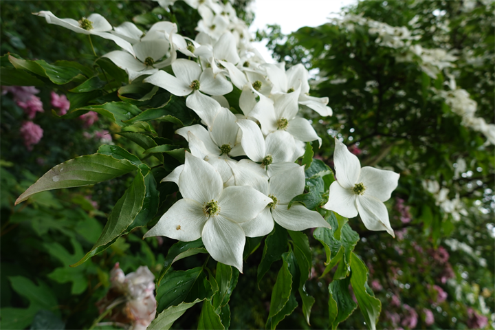3枚目、親指の先ほどしかない可愛い花は山法師(ヤマボウシ)と思うけれど、スーパー近くで。4枚目のヤマボウシが普通サイズで大きい。