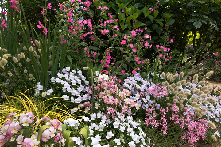 そういう時に、イングリッシュガーデンの岩絡みは園内に入らなくても見られる場所に植えられていて、毎年大きくなるので嬉しい。地味な花だけれど。