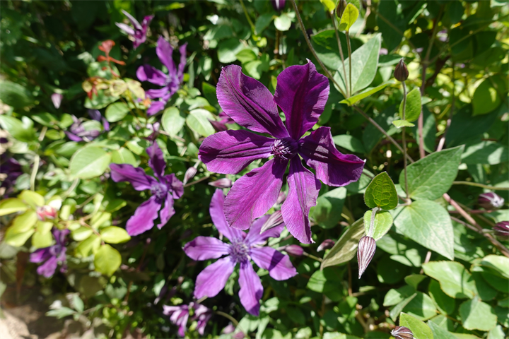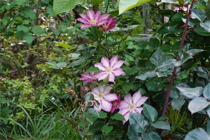 1〜2枚目は3月30日。3〜4枚目は4月25日。5枚目からが今月。バラの花も一緒に咲いている。