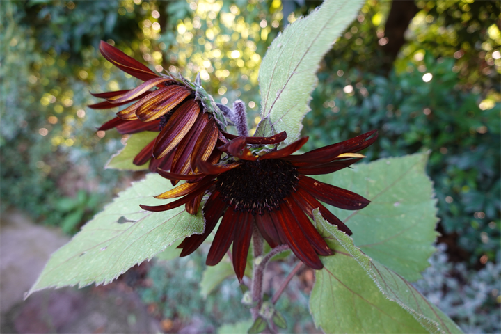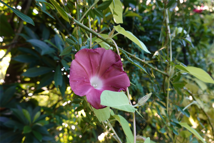 日中、あまりに暑いので、夕方近くになって出かけた3日前のイングリッシュガーデン。まだ朝顔の団十郎が咲いていてびっくり。前回も3時過ぎに咲いていたけれど、今回は4時前。