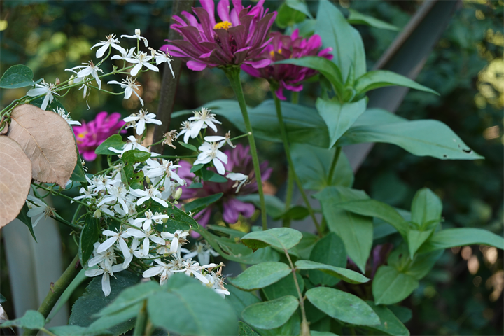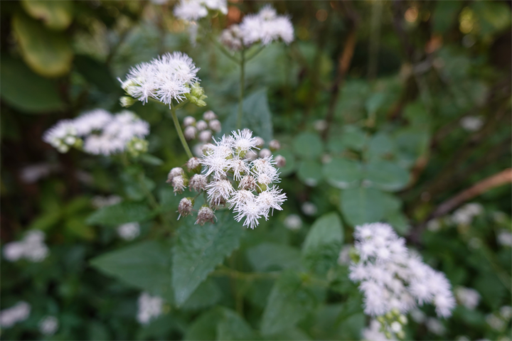 3〜4枚目、ユーパトリウム・ピンクフロストが咲き始めていた。斑入り藤袴(フジバカマ)のこと。
