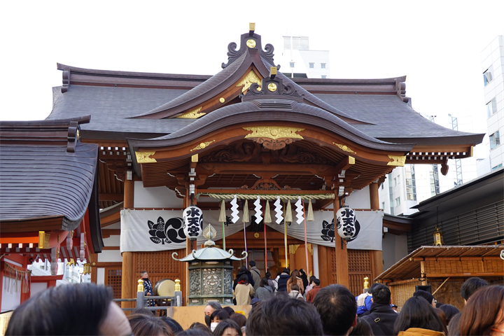 整体院の目と鼻の先が水天宮。昨日は節分で、タレントが来て豆まきをしていると先生に聞き、帰りに参拝して帰るつもりだったので寄ると、5時近くなっていたので、やっと抽選入場や行列がなくなったところらしく、スムーズに入れた。