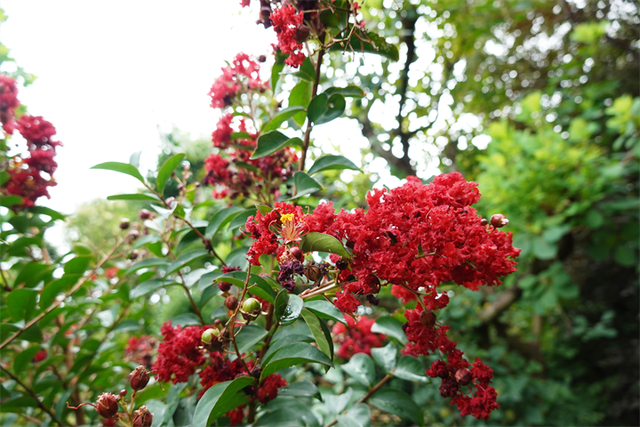 3枚目、真っ赤な百日紅(サルスベリ)。