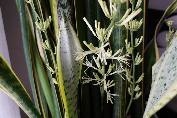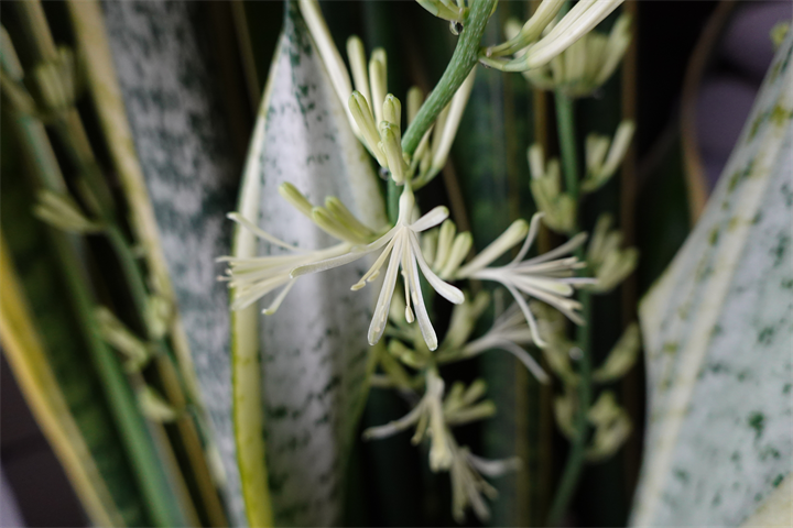 サンセベリアの香りは妖しい。夕方、花が咲き始めると漂いはじめ、夜の間、強く香って8畳の寝室は噎せそうなほどになり、その香りは玄関にまで広がる。