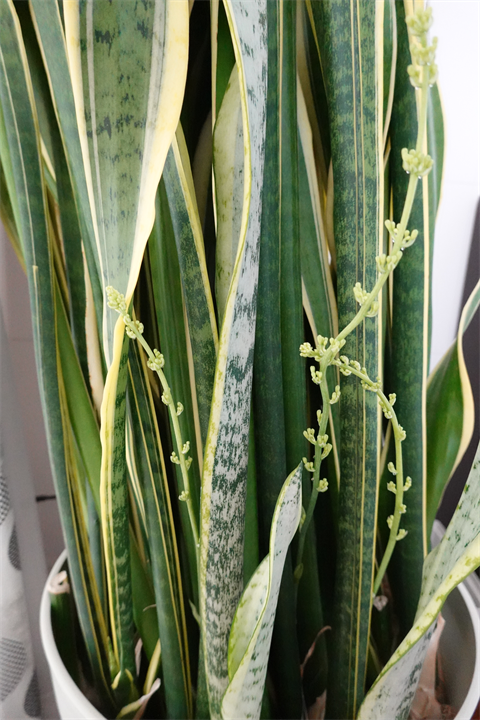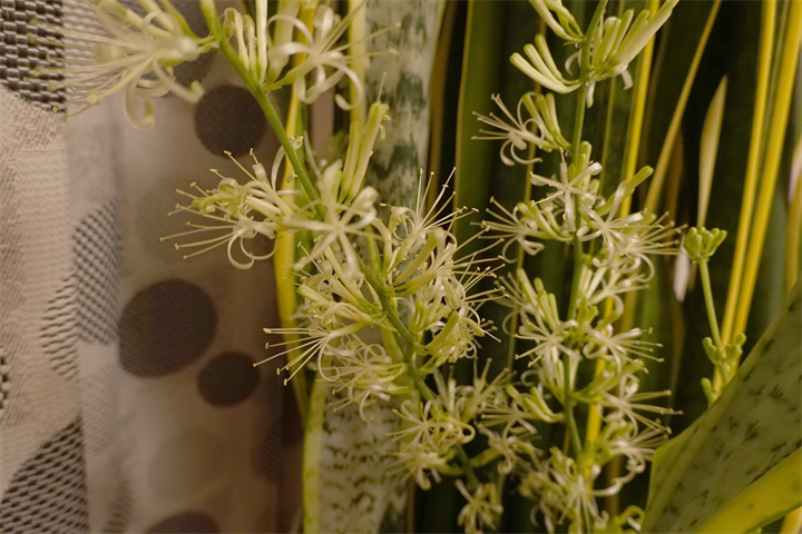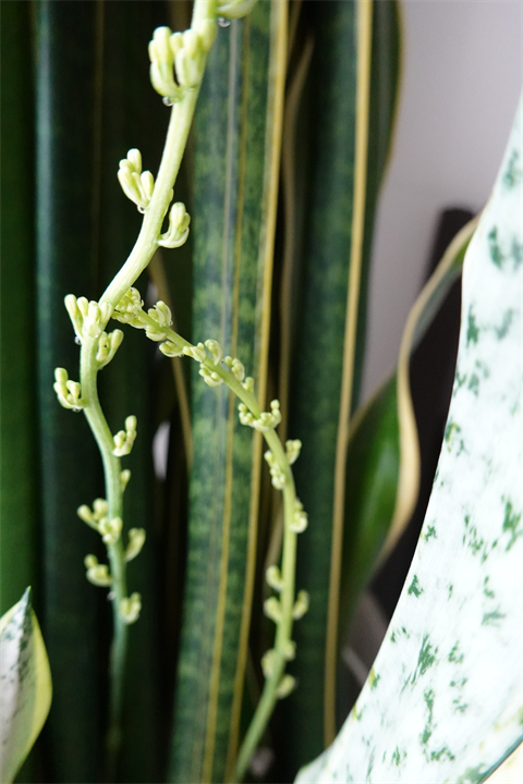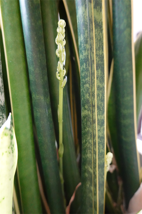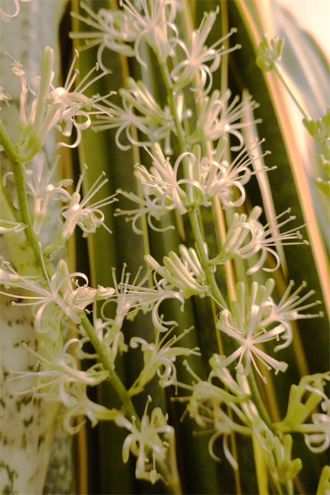 待ちに待ったサンセベリアの花が、昨日夕方から咲き始めた。