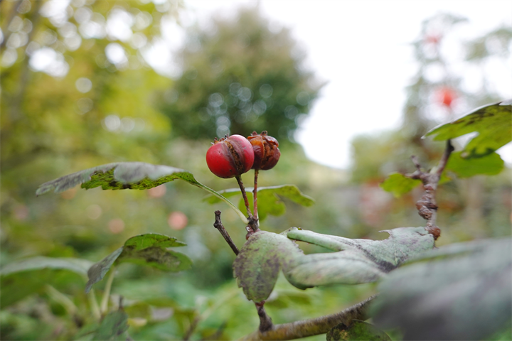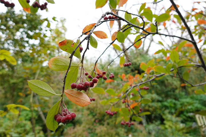 2枚目、西洋鎌柄(セイヨウカマツカ)。実が弾けるまでもう少し。