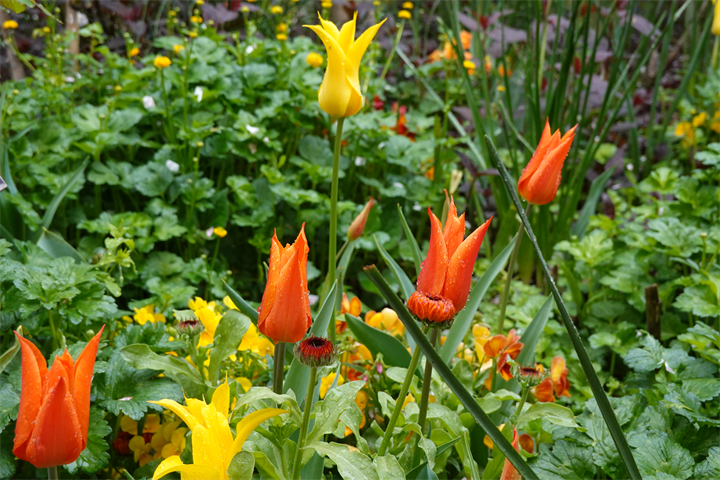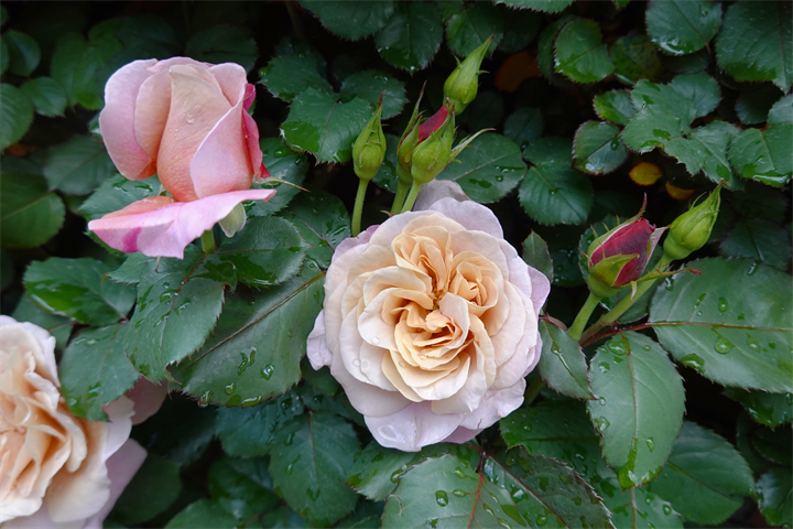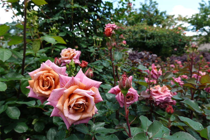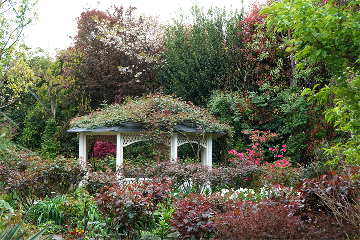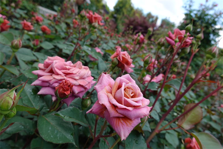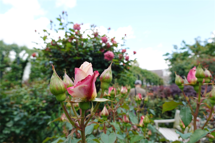 薔薇のアーチにはまだほとんど花はなく、つぼみだけの薔薇の木もあるけれど、園内には2200種、2800本の薔薇があるので、早咲きから遅咲きまで、これからひと月ほど楽しめるだろう。そのうち紫陽花も咲いてくるだろう。イングリッシュガーデンの紫陽花と薔薇の競演は素晴らしい。