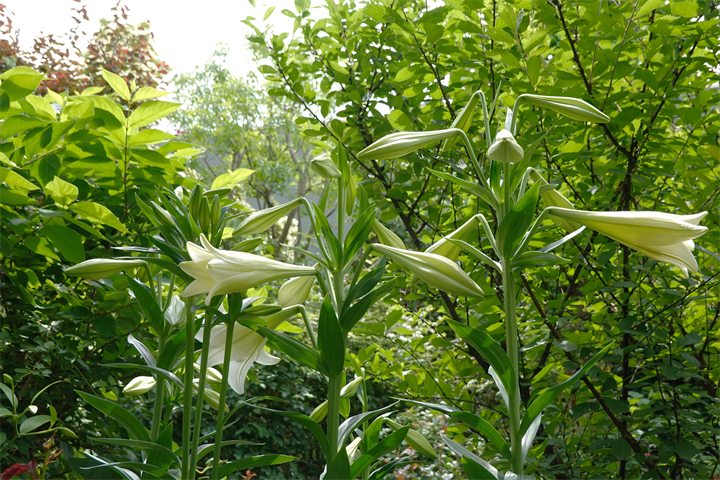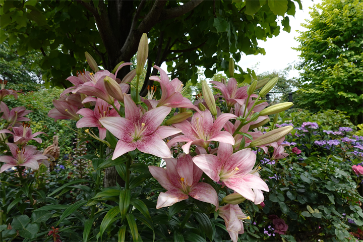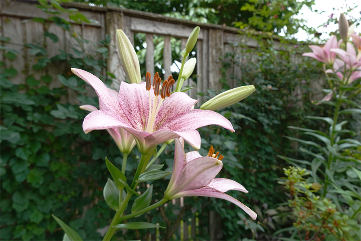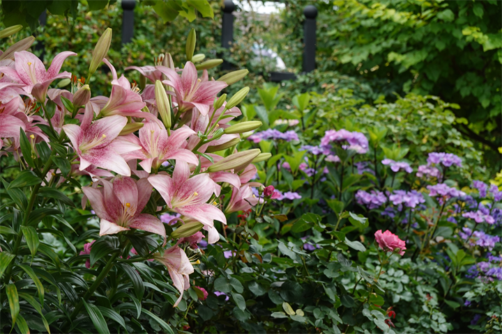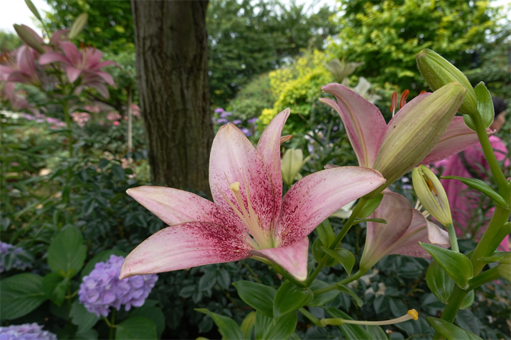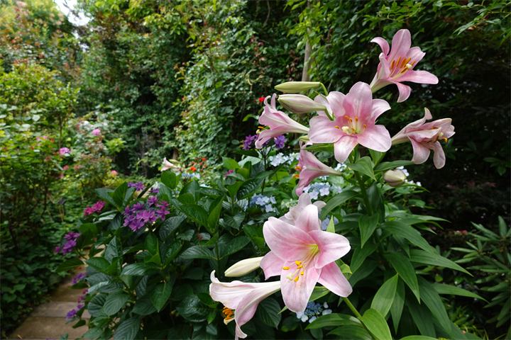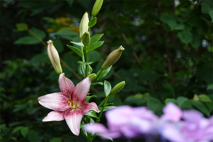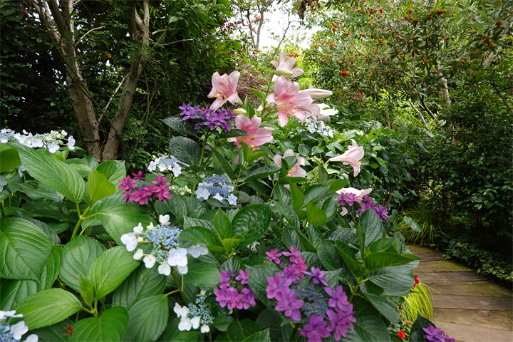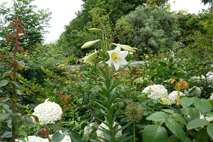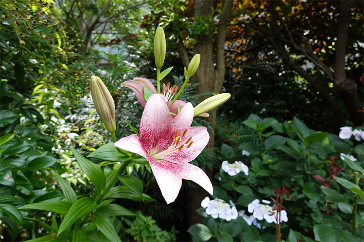 9〜10枚目、百合と額紫陽花(ガクアジサイ)。