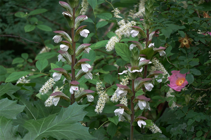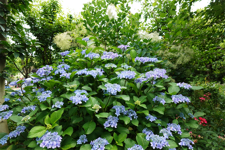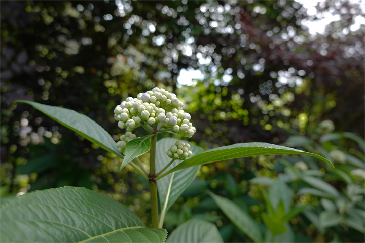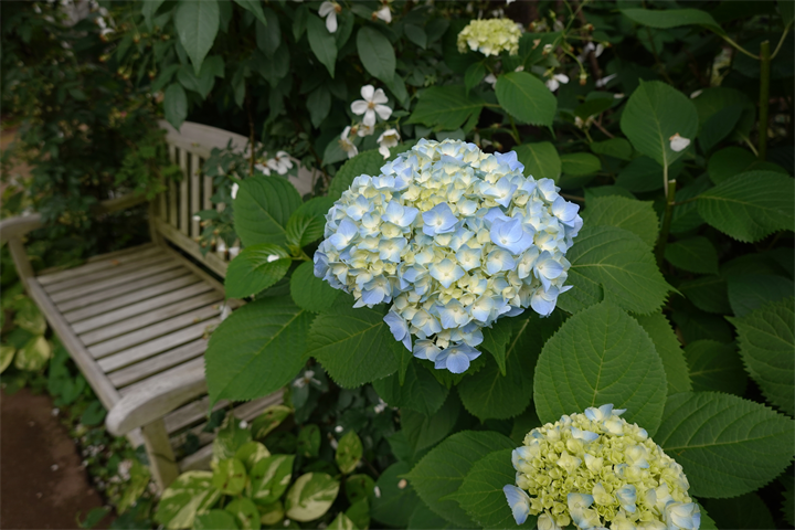 そのすぐ近くで11〜18枚目、常山紫陽花(ジョウザンアジサイ)。少し変わっている大好きなの紫陽花のひとつ。11〜12枚目は今月初め。まだかまだかと開花を待っていたので、それから10日ほどしての開花を見た時は嬉しかった。切らないでそのままにしておくと、秋には珍しい大きな青い実をつける。写真でしか見たことがないけれど、いちど実物を見てみたい。けれど、花が終わると剪定されてしまい、きっと今年も実を見るのは難しいだろう。