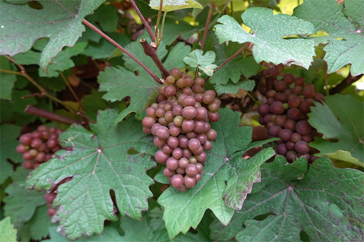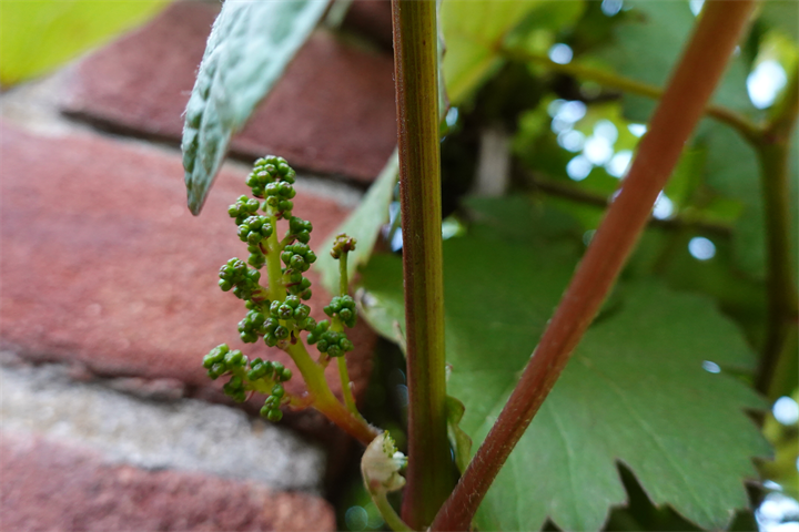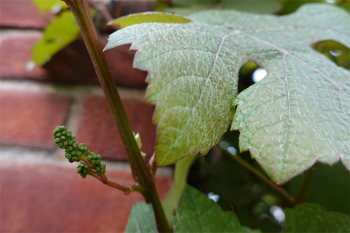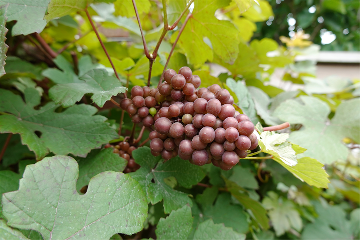 1〜2枚目、成長を楽しみにしていた5月初めのヨーロッパ葡萄 プルプレア。3〜4枚目、現在の立派に育った姿。ミニでかわいい。