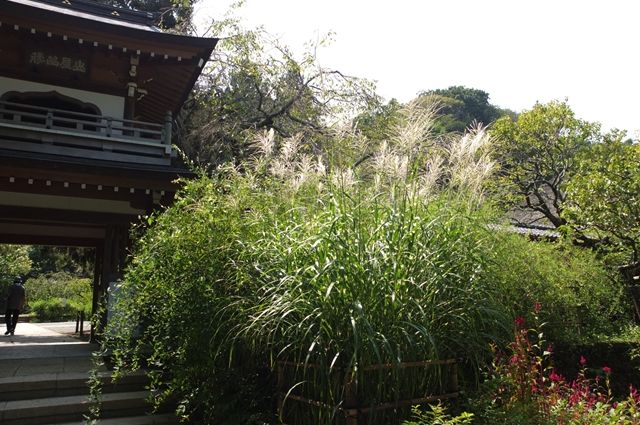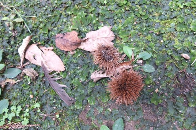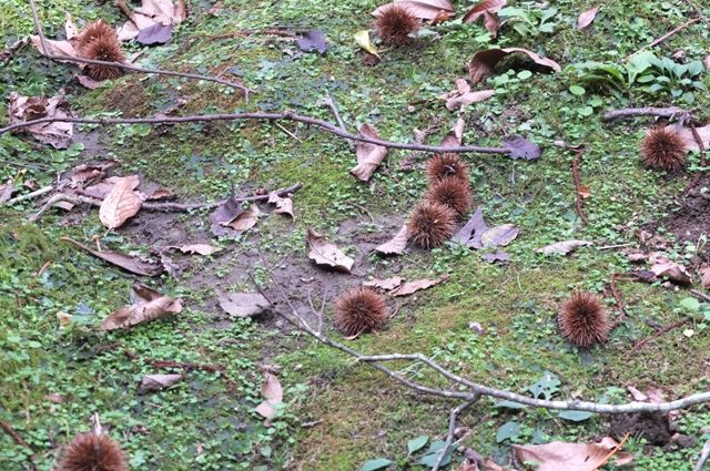 1枚目、7日の北鎌倉浄智寺の山門とススキ。2〜3枚目境内に栗が落ちていた。