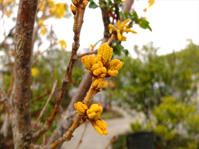 横浜イングリッシュガーデン前で クヌギの若葉と花