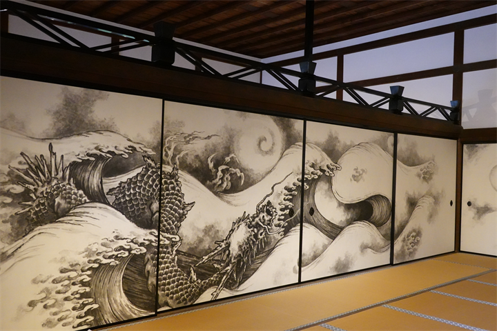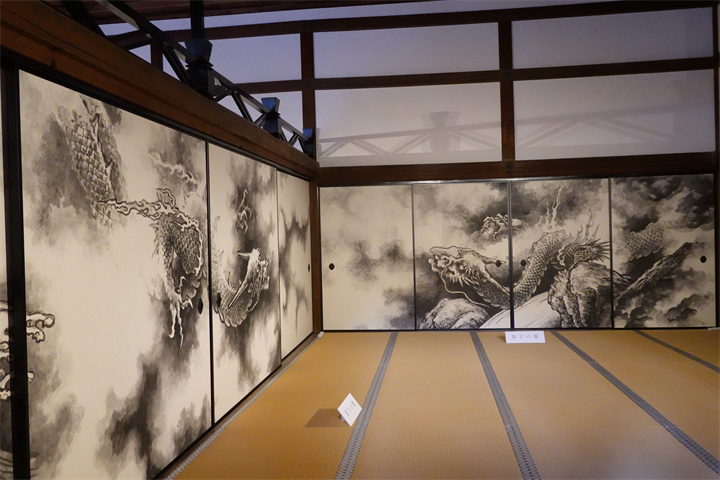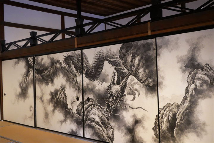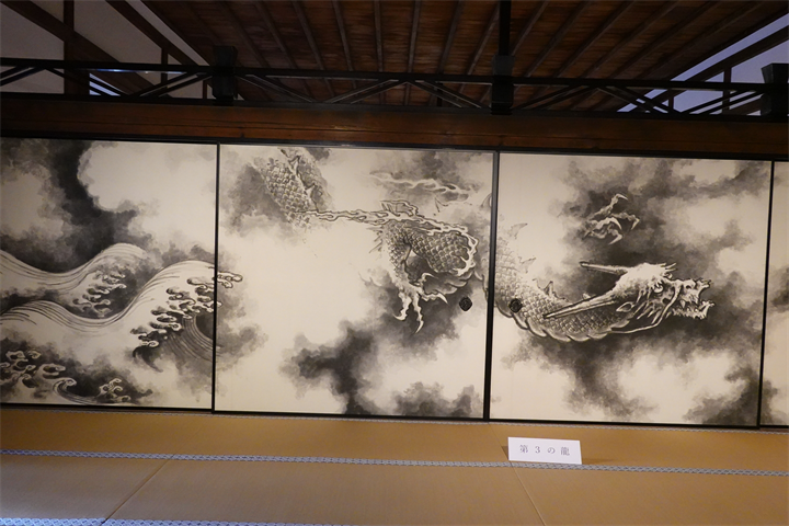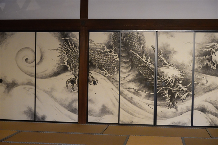 7〜12枚目、前総理、細川護熙(もりひろ)氏による方丈の雲龍図襖絵。全40面の一部。2023年に完成したそうで、1昨年のこと。私は初めて拝見した。完成まで2年半かかったとか。