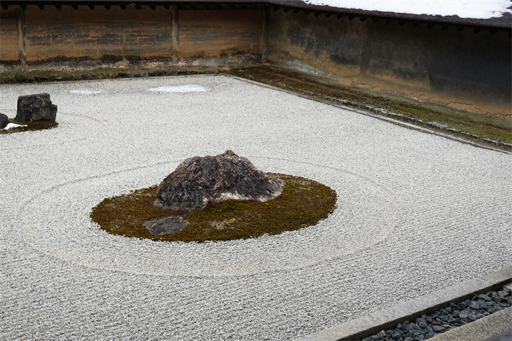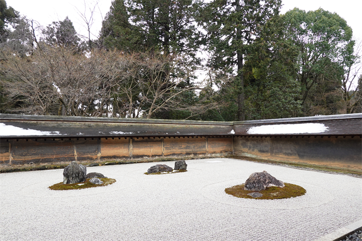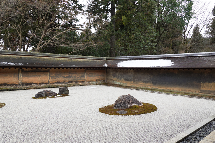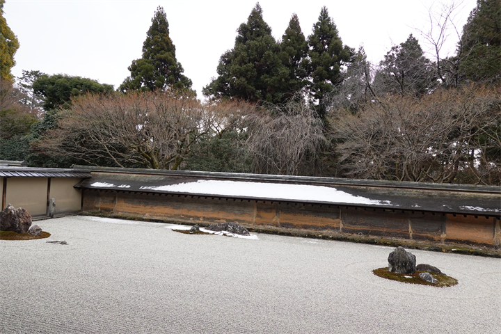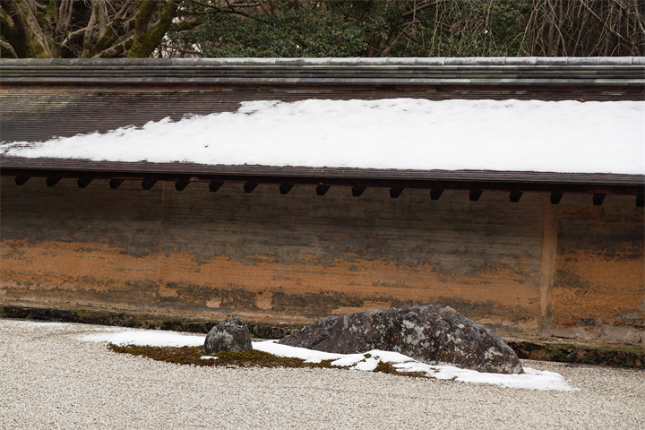 2〜7枚目、虎の児渡しの庭と呼ばれる有名な石庭には雪が少し残っていた。